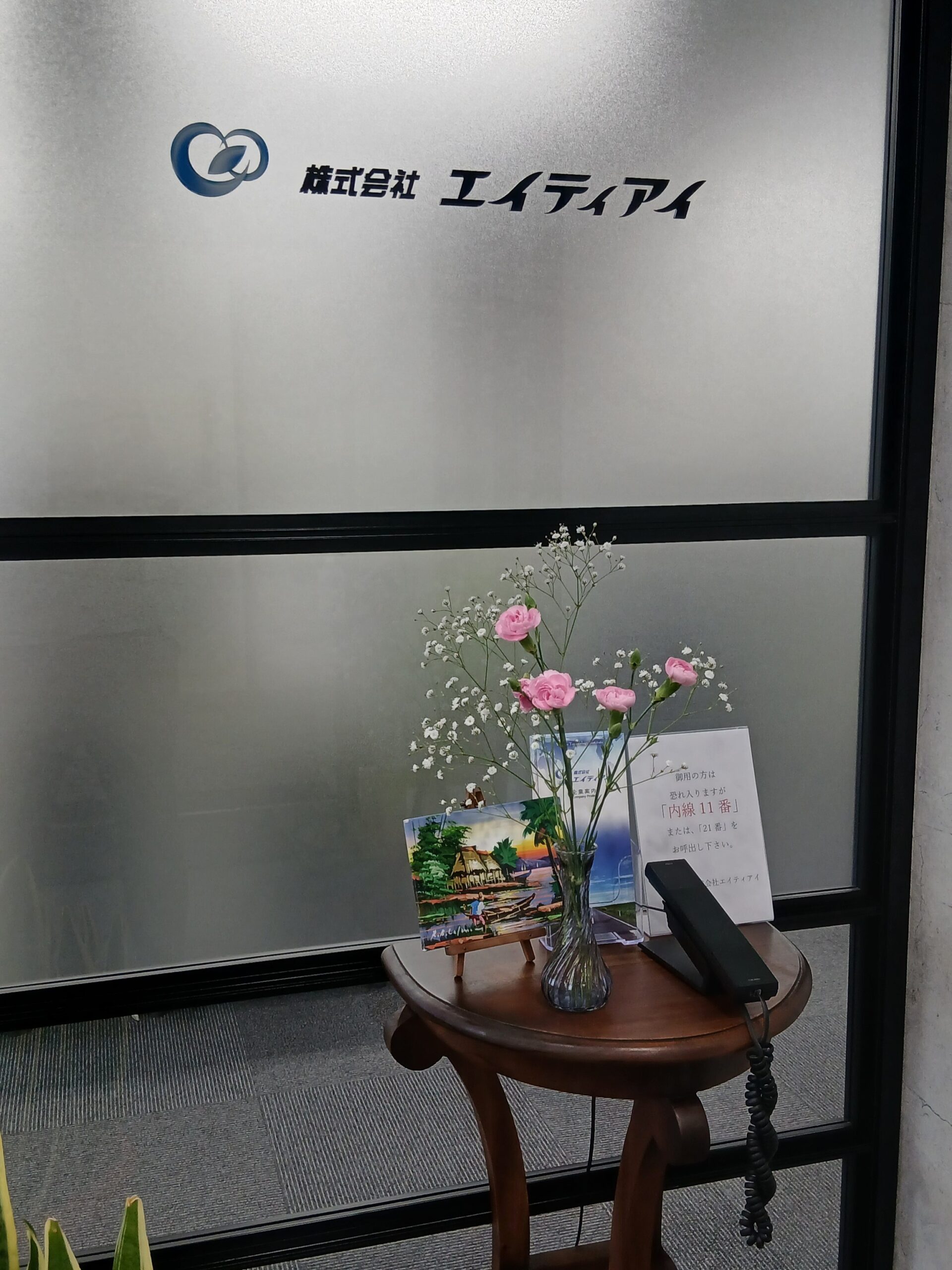 4月になり、弊社のエントランスにもきれいなお花が生けられました。